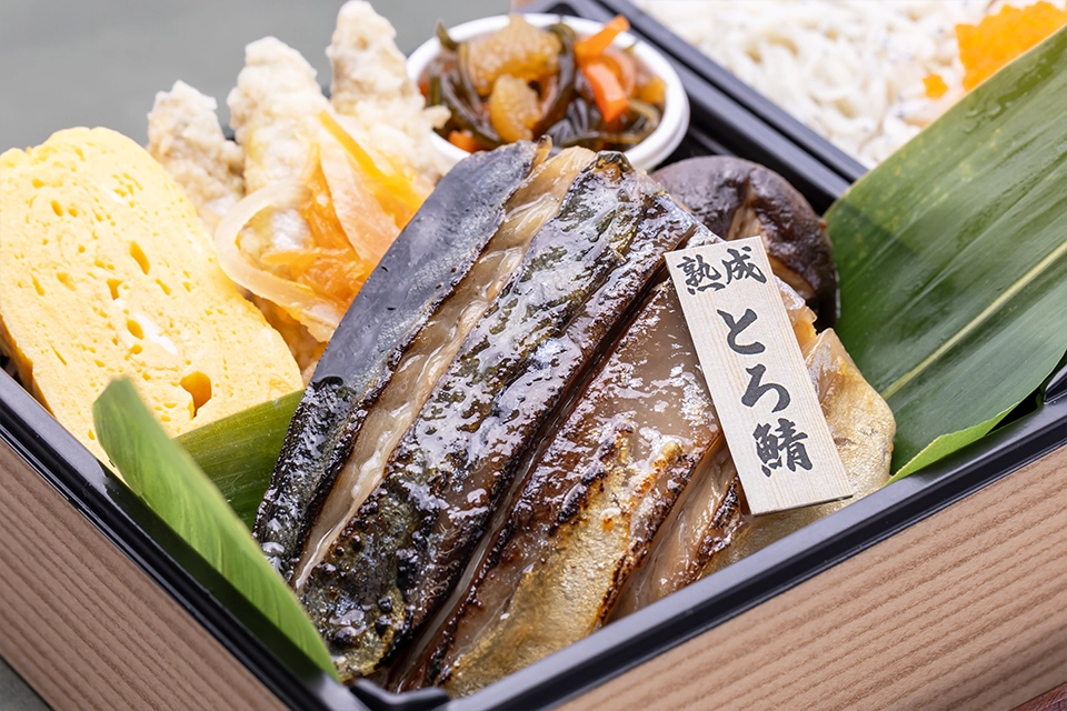 〜熟成の技が引き出す、魚の極み〜 生でも食べられる新鮮な魚をあえて寝かせ、旨味を最大限に引き出す「熟成」の技。 繊細な温度と時間を管理のもと、一番美味しい瞬間を見極めて仕上げた熟成魚を、上品な和の惣菜とともに。 熟成魚は広がる豊潤な旨味、風味が格別です。 魚に眠る味わいをこだわりの技法にて極限まで引き出した、特別な熟成魚二段重でおもてなしをお届けします。