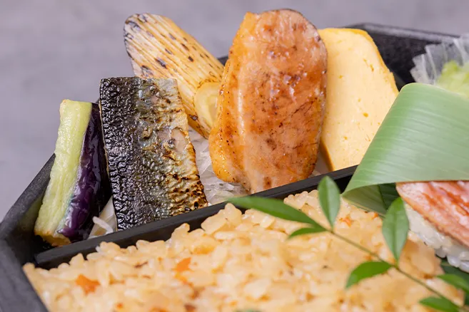 食材を吟味し、余計な演出はせず、美味しいものを少しずつ盛り込んだ板前割烹のお弁当です。