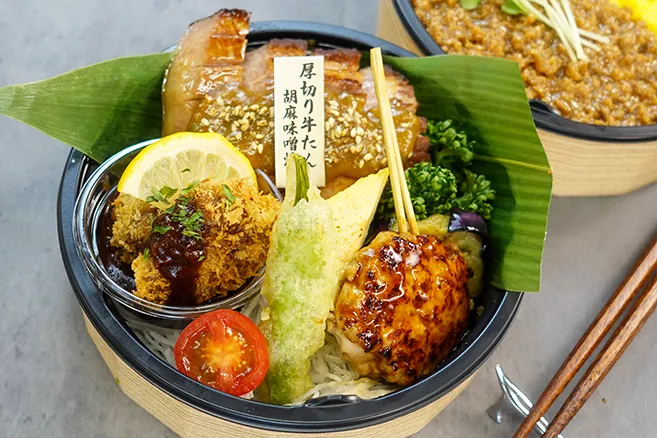 | お品書き | <壱ノ重> 厚切り牛たん 吟醸胡麻噌焼き 和風つくね照焼き 鶏とろ肝のフライ 玉子焼き、そうざい <弐ノ重> そぼろ煮ご飯 明太子・出汁玉子ご飯 お茶PET500ml |