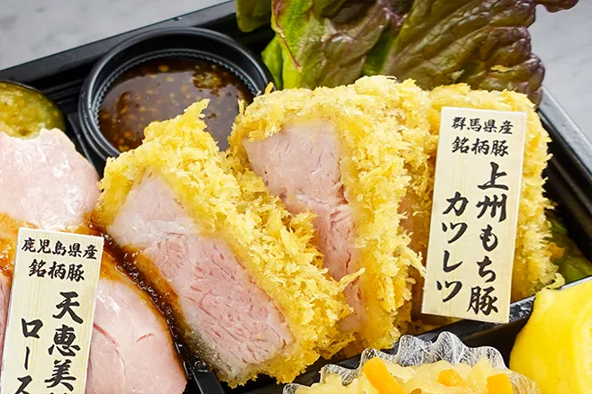〜芳醇な旨みが広がる、全国のプレミアムポークをお届けいたします〜 国産の中でも、いま一番美味しい銘柄豚をお愉しみください。 銘柄豚の上質な部位を厳選し、低温でじっくりと火入れすることで、しっとりとなめらかな口当たりと、上品な脂の甘みを引き出しました。 上品な脂の香りとやわらかな食感が広がり、余韻まで贅沢な味わいに包まれます。 特製ソースと旬の副菜を添えたお弁当は、見た目にも華やかで素材と技が織りなす、格別のひとときをお届けいたします。