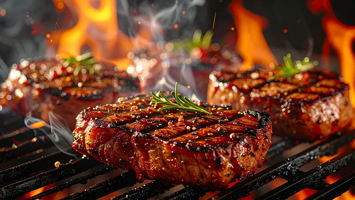 厚切りでも柔らかく、たっぷりの旨みのあるロースト製法でご提供いたします。専用の調合スパイスで臭みのない美味しいステーキに仕上げています。