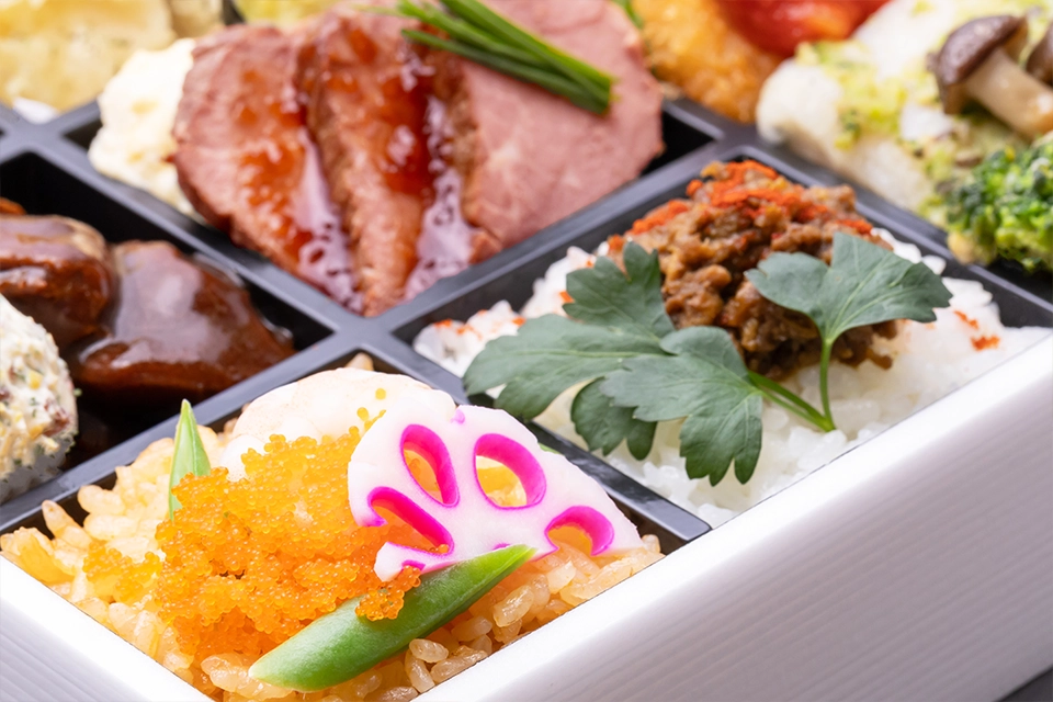 大きな会議や学会など50個以上のご注文時は特注弁当をご提案させていただきます。お客様のご要望に配慮した商品を試作し、写真にてご確認いただくことも可能です。