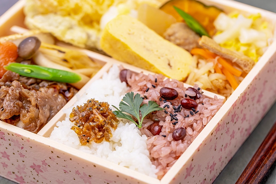 さらに季節の惣菜や縁起の良い紅白飯など様々な食材で仕上げました。